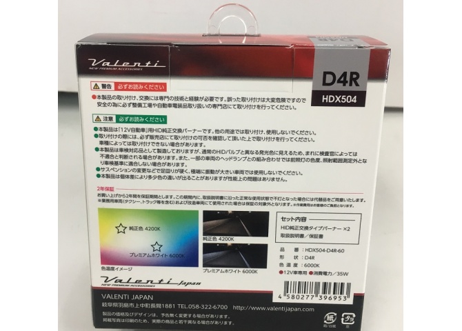 Valenti(ヴァレンティ) エクスチェンジバナー純正交換用HIDバルブ D4R/6000K