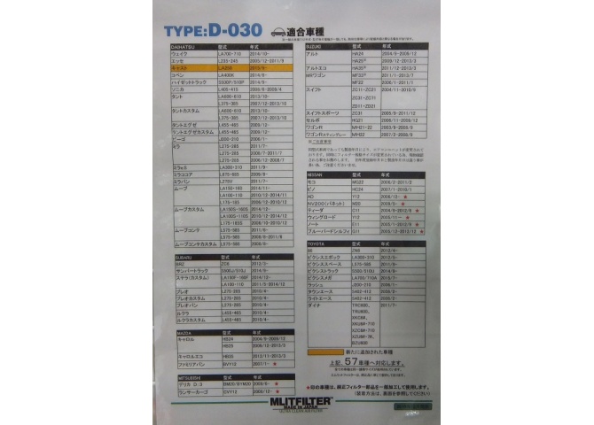 MLITFILTER エムリットフィルター【D-030】エアコンフィルター キャスト・ムーヴ等 【45-0526】