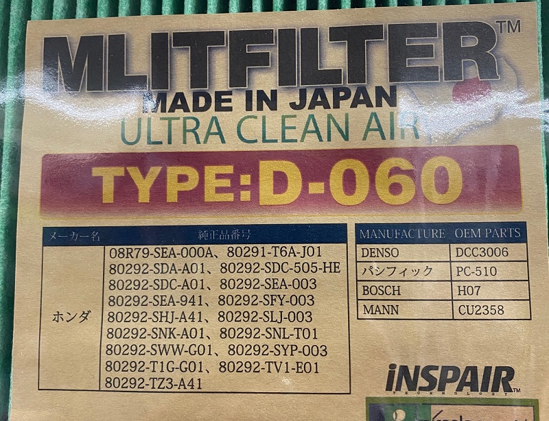 【新品】MLITFILTER エムリットフィルター 【D-060】 エアコンフィルター アコード・オデッセイ・ステップワゴン等【45-1301】