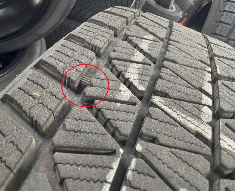 ※プラットホーム(スタッドレスタイヤとしての使用限度・写真赤丸内)まで約4.0mm程度