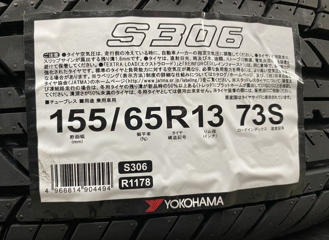 【新品】YOKOHAMA S306 155/65R13 1本のみ【49-4494】