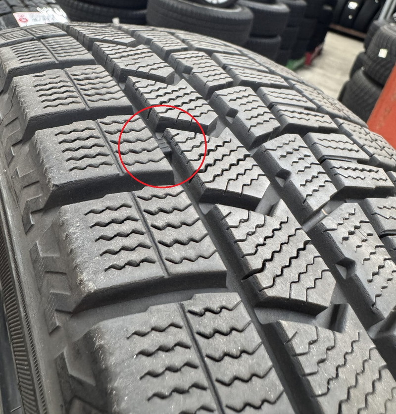※プラットホーム(スタッドレスタイヤとしての使用限度・写真赤丸内)まで約3.5mm程度