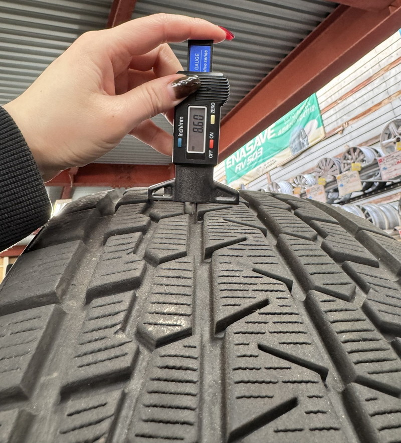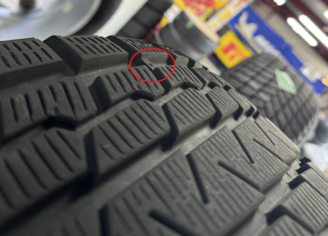 ※プラットホーム(スタッドレスタイヤとしての使用限度・写真赤丸内)まで約3.0mm程度