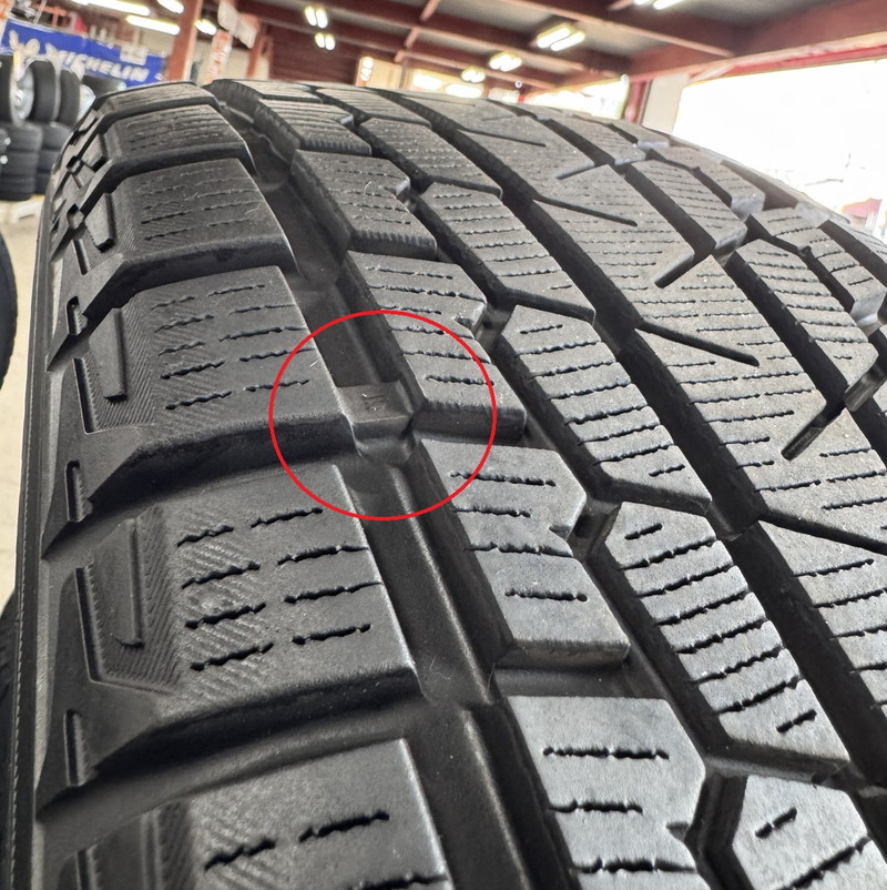 ※プラットホーム(スタッドレスタイヤとしての使用限度・写真赤丸内)まで約4.0mm程度